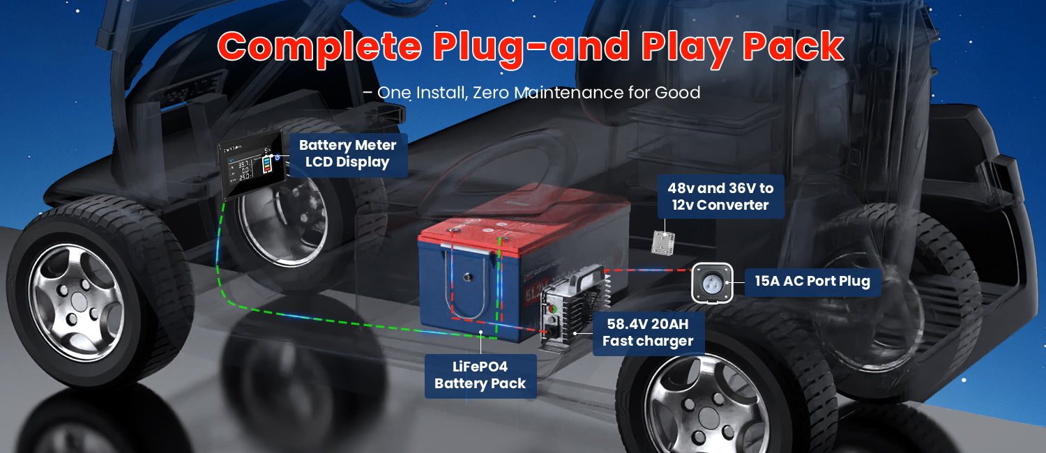 As long as your cart system is operating at 48V and currently using a lead-acid battery, our LiFePO4 lithium golf cart batteries can be a direct replacement. You would not need to change your electric motor or speed controller, making it a plug-and-play solution.