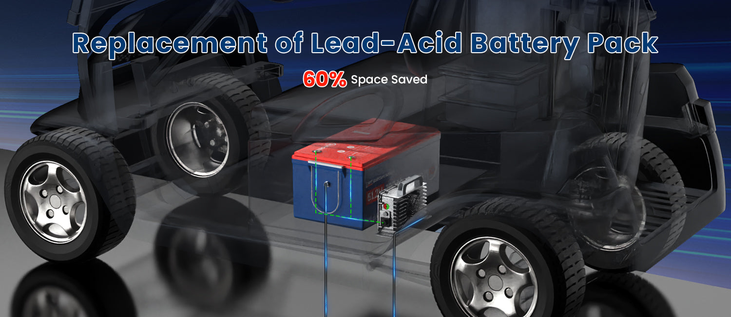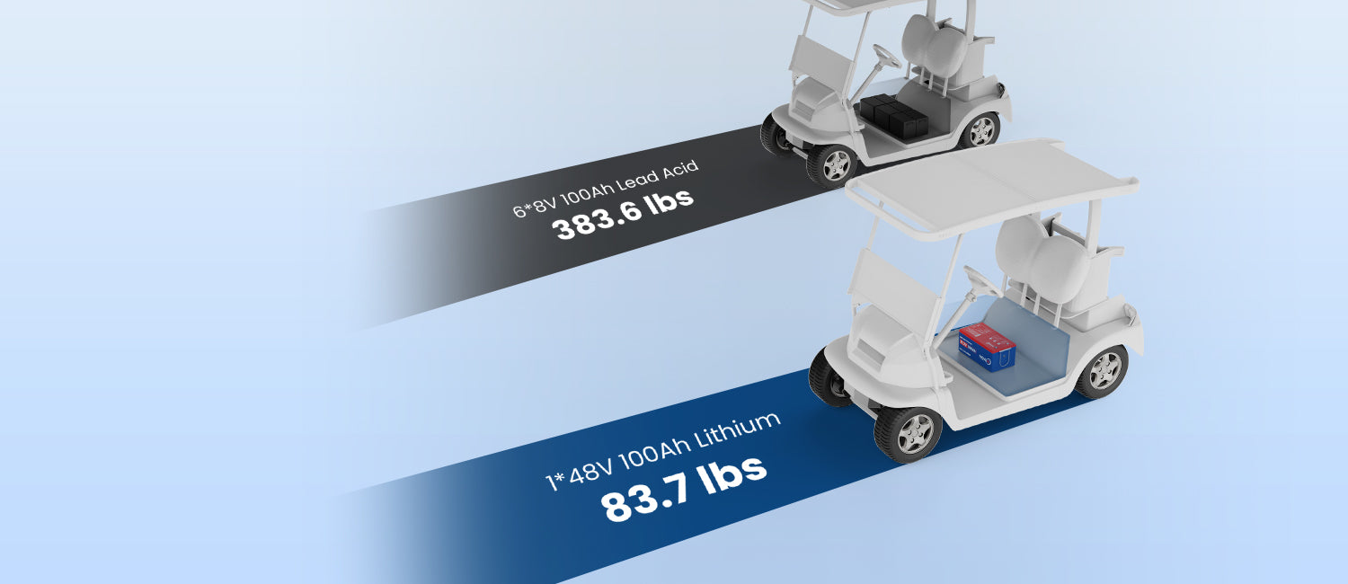 The Most Economical Choice for Replacing Lead-acid BatteriesWith 80% lighter in weight and 60% smaller in size, we make your golf cart more maneuverable, faster and with less wear & tear. Most importantly, we are more Cost-Effective to help you save over $300 per year in capital and technical maintenance costs.