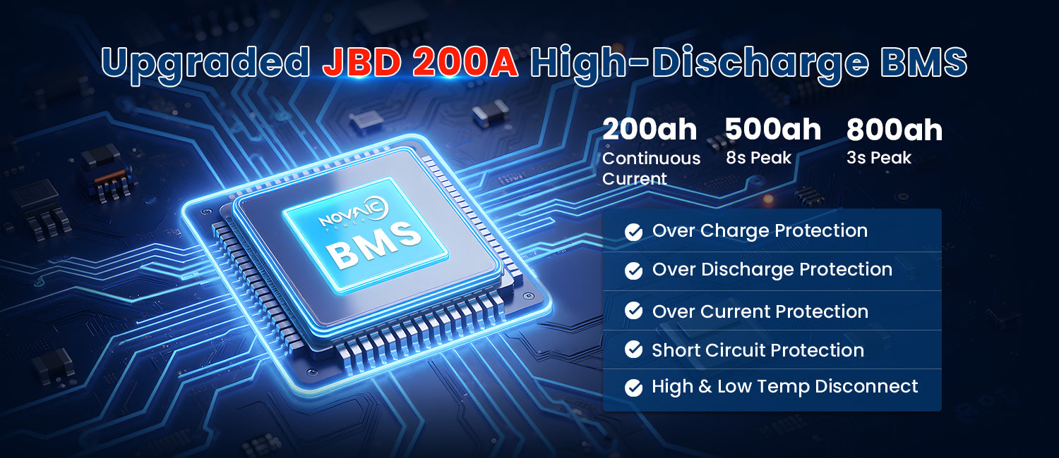⚡️FET BMS: Fast safety response protect battery before damage happened. Engineered for cost-effective, it delivers 3X longer lifespan than lead-acid batteries.